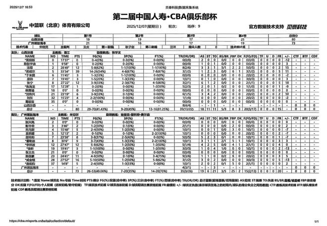 北京时间2025年12月7日15:00,第二届中国人寿·CBA俱乐部杯D组交叉赛展开争夺,山西汾酒对阵广州朗肽海本。本场比赛,双方从开局便展开激烈争夺,前三节比分始终紧咬,末节决胜时刻,本