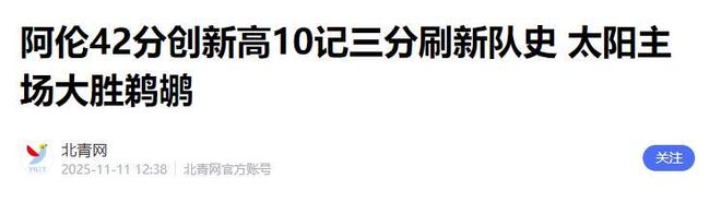 - 作品声明:内容取材于网络北京时间11月11日,NBA 常规赛迎来了堪称“神仙打架”的一天。当凯德-坎宁安在活塞主...发表于: 11-11 20:48