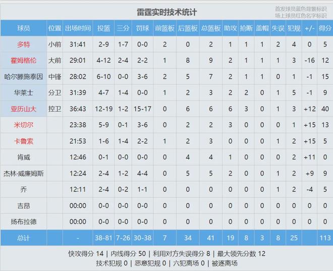 雷霆重新领先到4分,迪温琴佐上篮不中,森林狼只能对亚历山大犯规。雷霆没有犯错,全场结束,雷霆113-105战胜森林狼。雷霆豪取10连胜,18胜1负继续领跑联盟。亚历山大40分6板6助3断1失误;爱德华兹31分8板5助3失误。