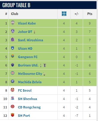 在上海申花客场负于柔佛新山之后,三支中超球队在亚冠精英联赛东亚区排名后三位,这足以反映中超球队目前的真实实力。在第四轮,上海海港客场0比2负于武里南联队,成都蓉城客场0比0